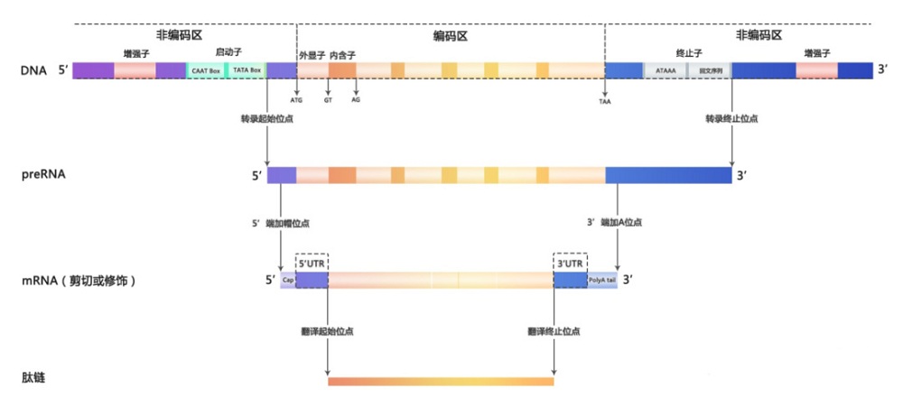 完整的人类基因组包含非编码区和编码区两个部分,其中编码区分为外显子区和内含子区。外显子组是指全部外显子区域的集合,该区域包含了合成蛋白质所需要的重要信息,涵盖了与个体表型相关的大部分功能性变异,因此外显子区的致病性变异往往被认为与蛋白质的功能改变直接相关。而与外显子区域相对的,是基因的内含子区域和非编码区域,这两个区域被认为更多的是参与基因表达的调控,例如非编码区存在启动子、增强子等可以启动或增强基因的表达,内含子区域的特定碱基位置也可以通过调控剪接来影响基因功能的改变。全外显子组测序(中文简称“全外”,英文简称“Whole-Exome Sequencing,WES”),顾名思义,主要是针对基因的全部外显子组部分进行测序检测。